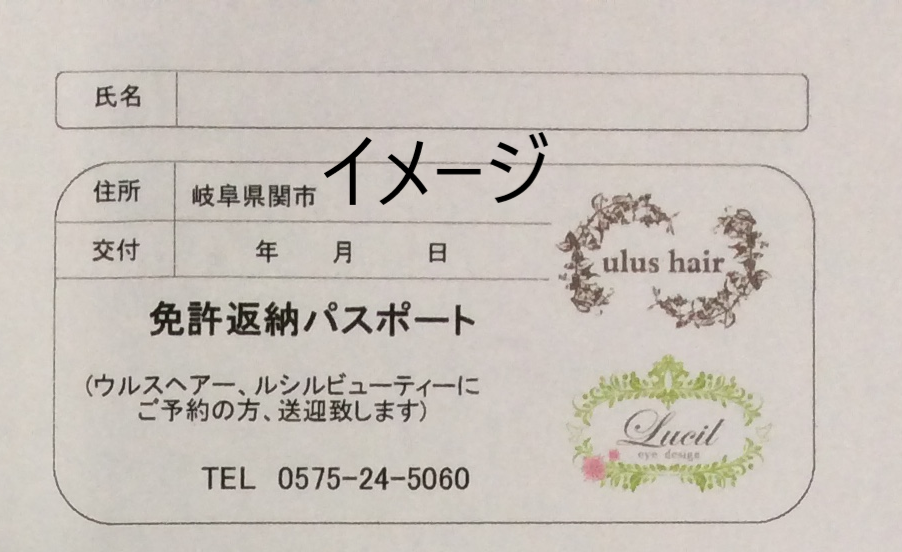 関市在住の65歳以上で、免許を自主返納された方に、運転経歴証明書のご提示で、ウルスヘアー特製の「免許返納パスポート」をお渡しします。