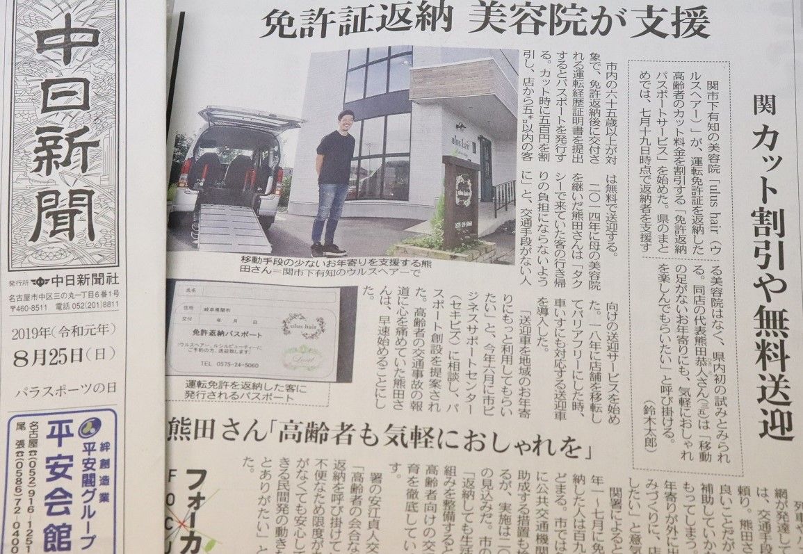 そんなネガティブなイメージがある免許返納ですが、関市下有知のウルスヘアーが免許返納者だから受けられる便利&お得な新サービスを開始しました!