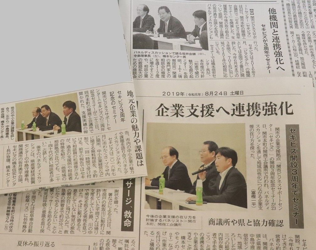 先日8月23日(金)開催したセキビズの3周年セミナー「関市の未来をつくる産業支援」を中日新聞、岐阜新聞、中部経済新聞でご紹介頂きました!