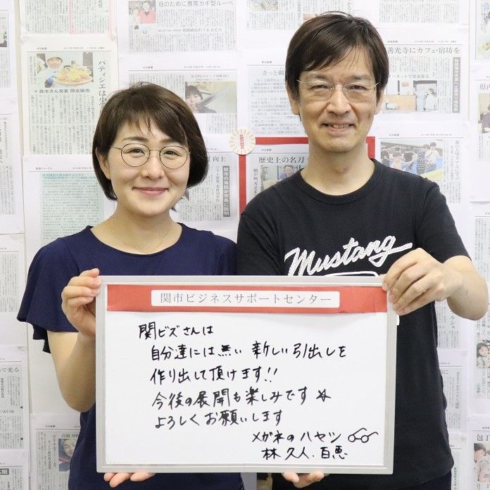 販路開拓に向けてサポートしているメガネのハヤシの林さんご夫妻から、セキビズを利用して、