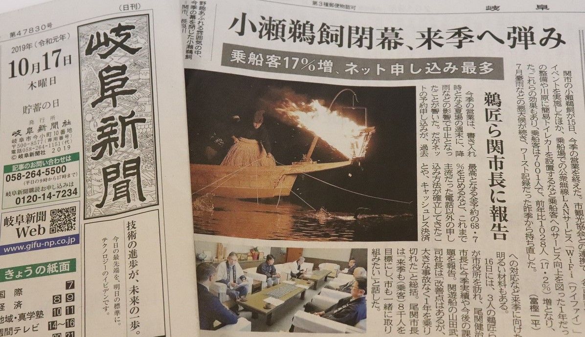 寂しいですが、先日15日で岐阜・長良川の小瀬鵜飼のシーズンが終わってしまいましたね。皆さん乗船されましたか?