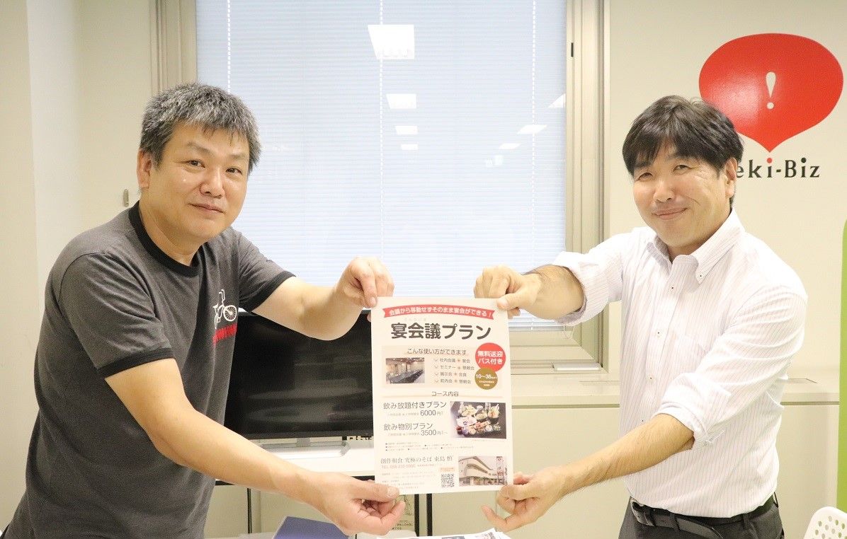 夜の集客アップに向けて、広い宴会場があり・無料送迎もできるという、同店の強みを活かして、セキビズから新サービス『宴会議プラン』を提案しました。