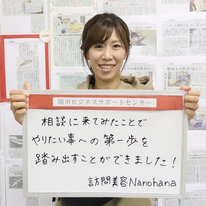 「まず初めてセキビズを利用させていただいた日に、あまり知られていないであろう『訪問美容師』という業種の相談にも、色々聞き出して下さり、興味を持って下さいました。2回目の時には、事前に訪問美容について調べてくださっていたり、その場で一緒にリサーチしてもらったりして、とても心強かったです。そのあとは、チラシやホームページなどPRに向けたアドバイスをいただき、徐々に開業に向けて進んでいるなと実感することができました。ひとりでは絶対にここまでたどり着くことは出来なかったと思います。開業後も、頼りにさせていただきます!」