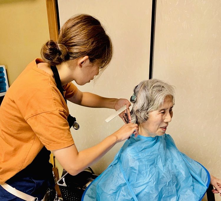 上之保のお年寄りの方が、車に乗れなくなると自由に外出できず、美容院に行くことの大変さを感じたそう。「知り合いや家族の髪を切ってあげると、とっても喜ばれたんです。そんな中で、困った方に利用してもらえればと、取得した訪問福祉理美容師認定資格も活かせる、訪問美容をやってみようと決めました。」