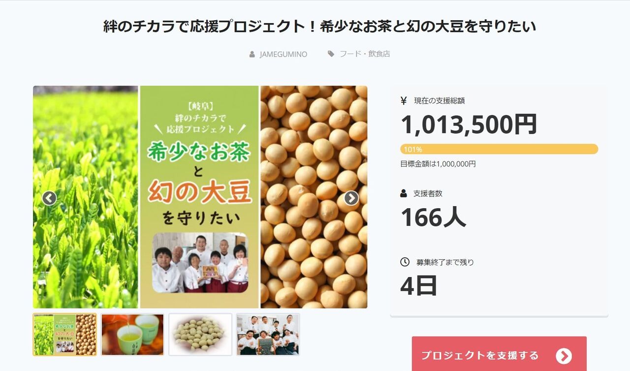『絆のチカラで応援プロジェクト!希少なお茶と幻の大豆を守りたい』