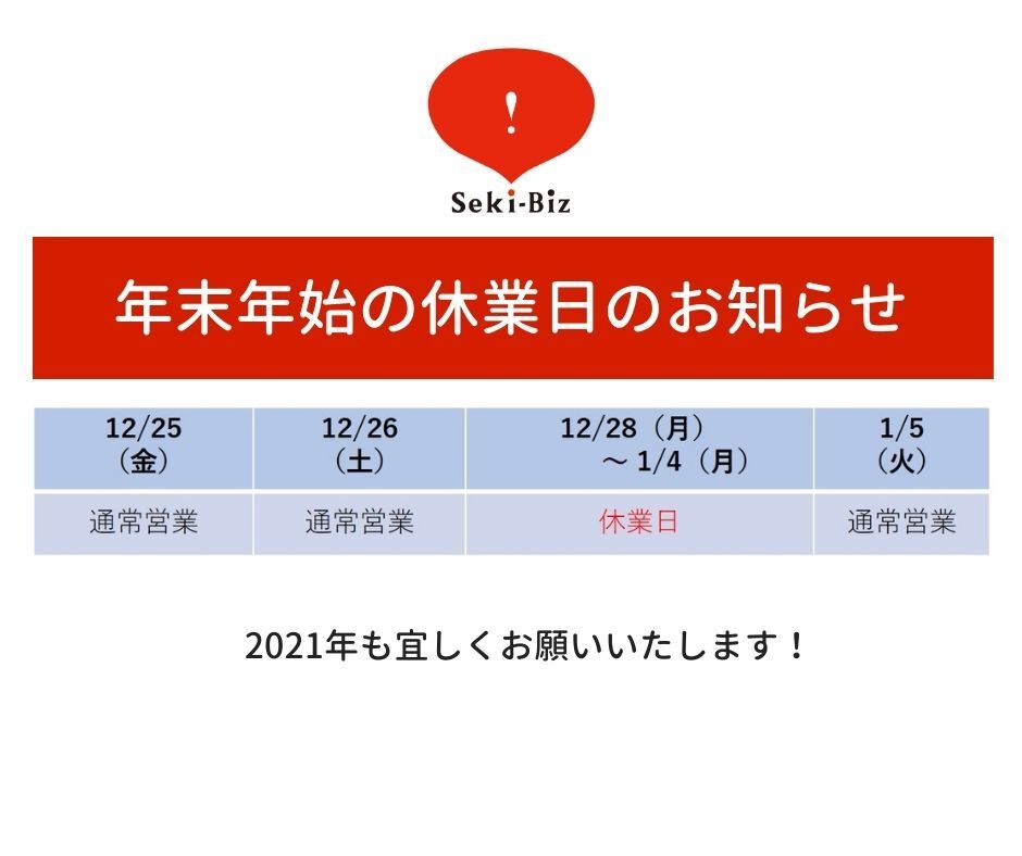 セキビズの年末年始の休業日をお知らせします。