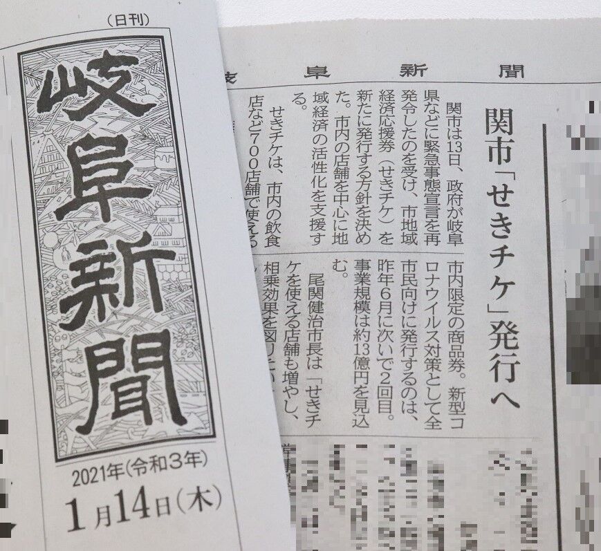 1月14日の岐阜新聞にも掲載されましたが、