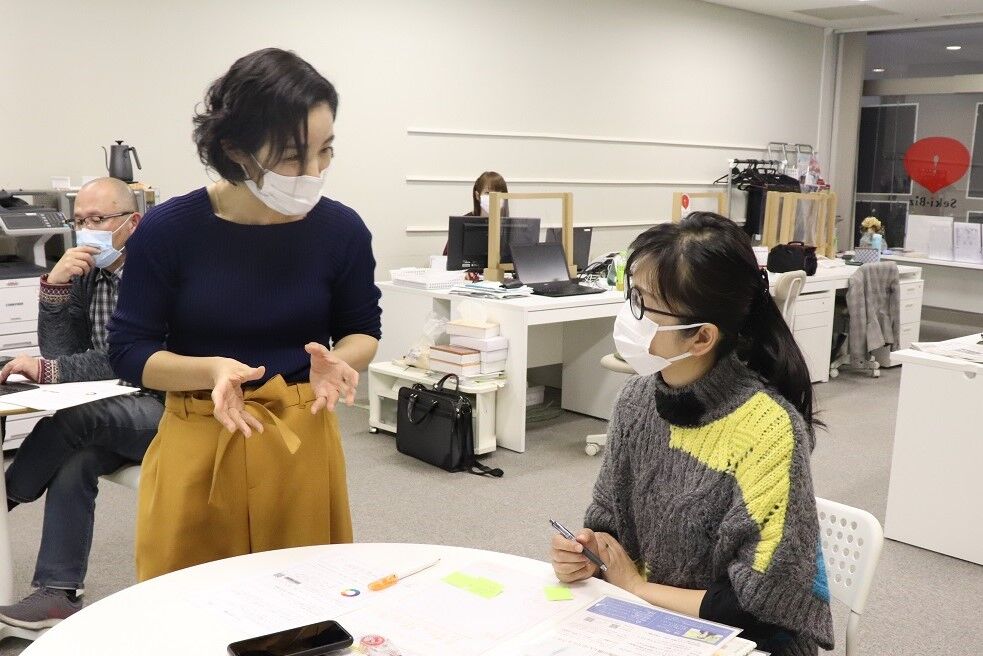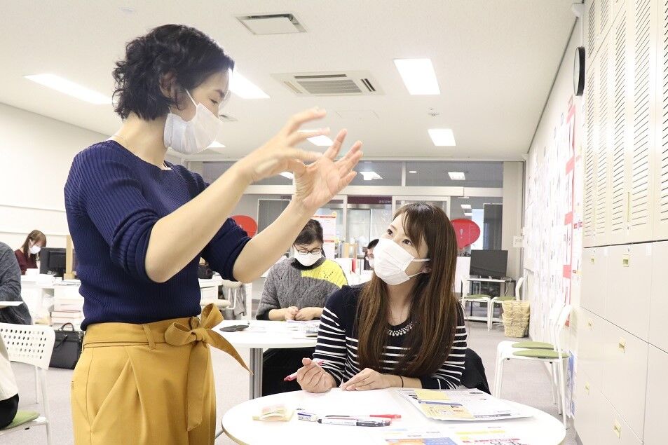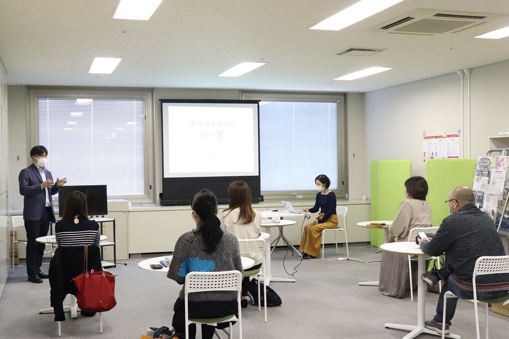 チラシデザインについての基本を学ぶ座学とワークを通して情報を整理し、ご自身でチラシが作成できるよう、ラフ案を作成していきました。