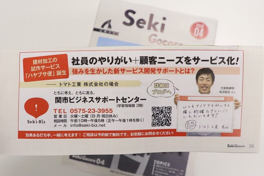 4月号の広報せき「セキビズコーナー」で、ご紹介しました☟
