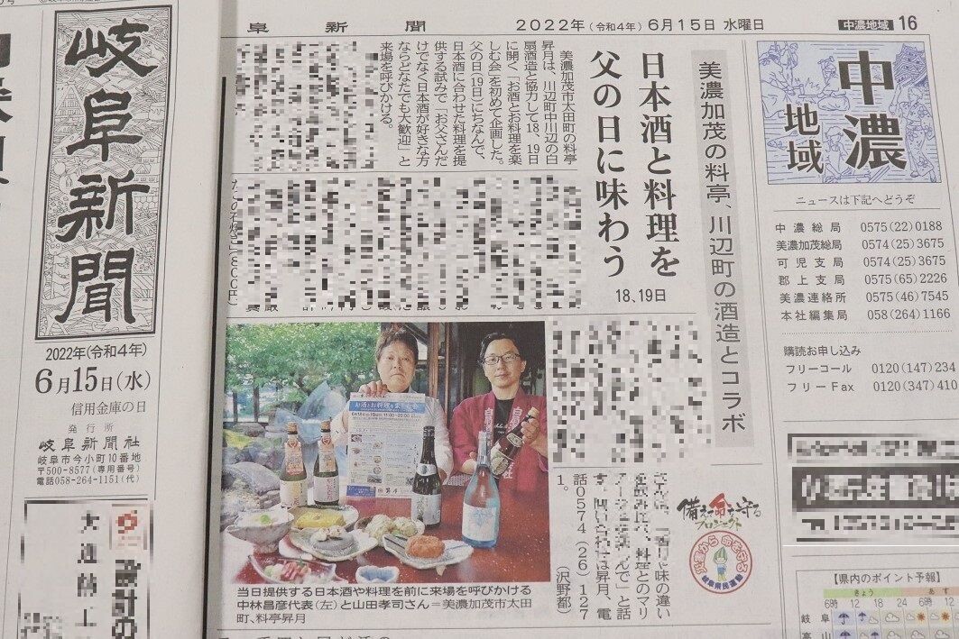 セキビズも情報発信などをサポートし、昨日6/15の岐阜新聞にも大きく掲載されました。