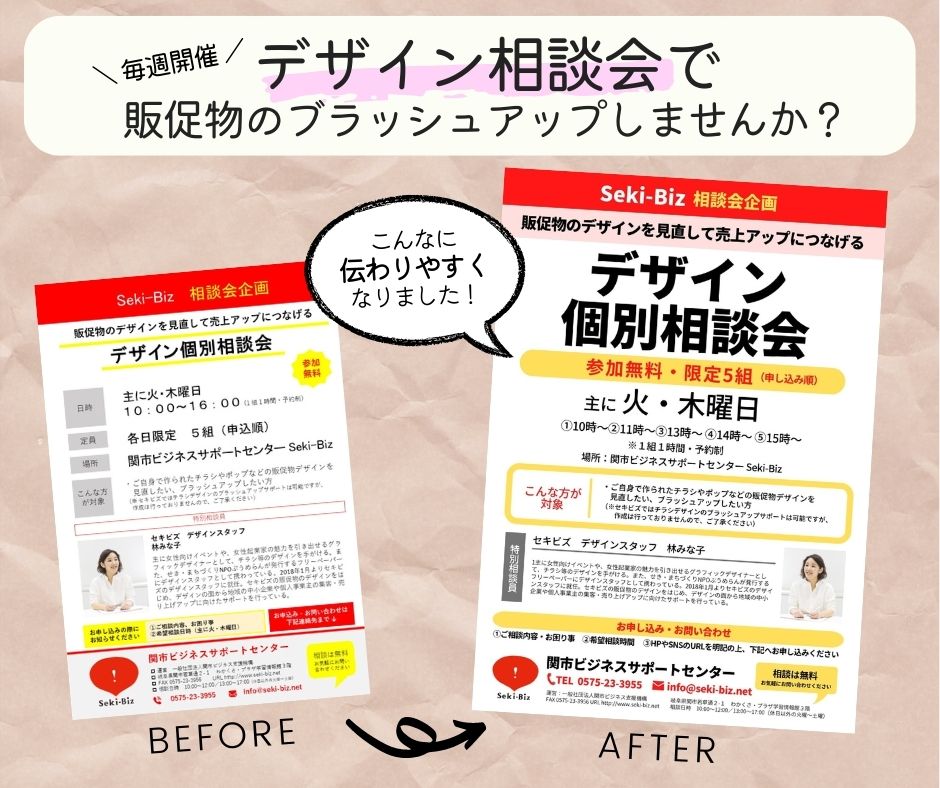 画像のBeforeは、パワーポイントで作成していたセキビズの相談会のチラシ。