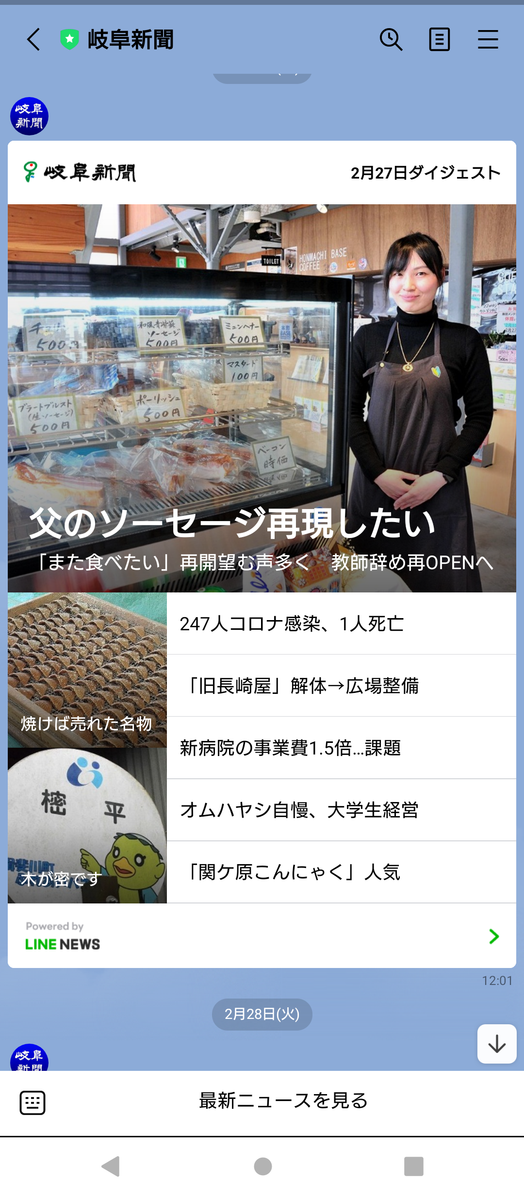 岐阜新聞のLINE公式でも、一面でご紹介いただいています。