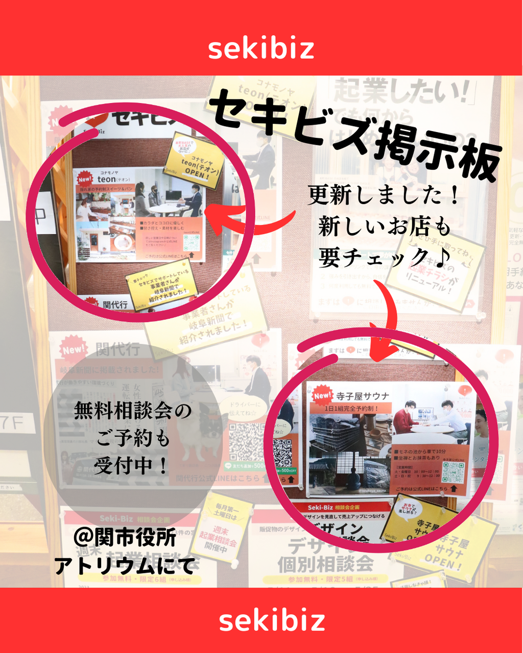 関市役所アトリウムのセキビズ掲示板が更新されました!