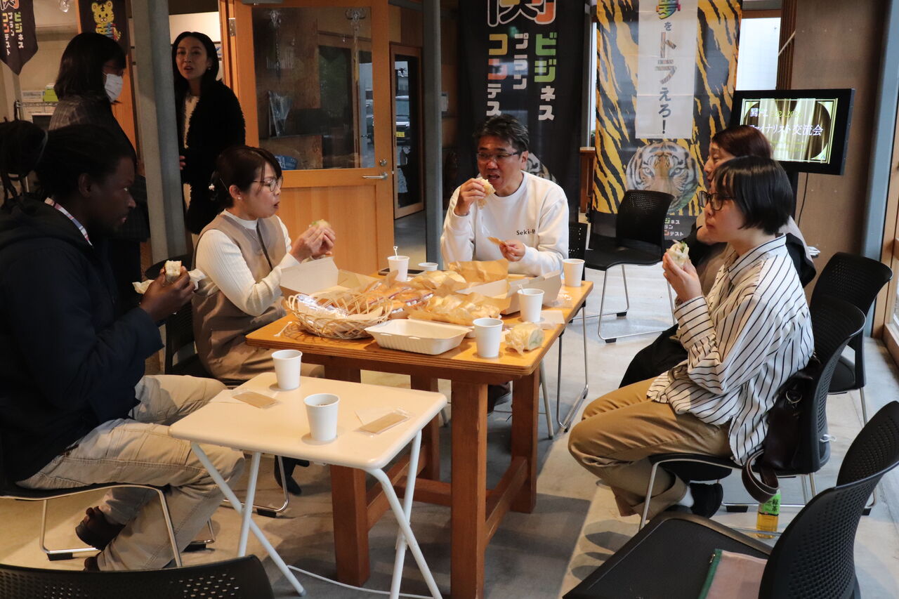 その後前年度の受賞者2人と、杉山センター長を含めた7人で机を囲み、交流会が行われ、受賞者が作ったサンドイッチやセネガル料理を食べながら、これからに向けての情報交換をしました!
