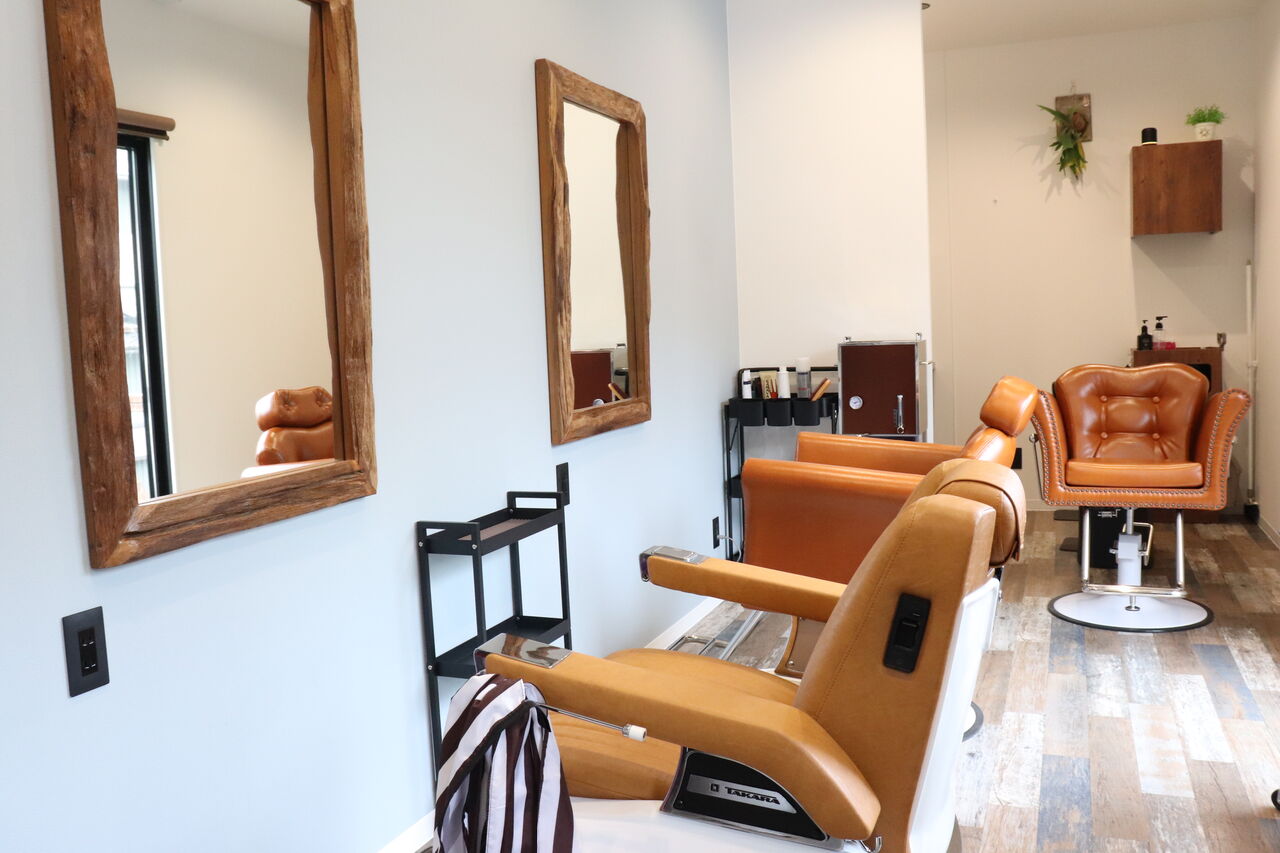 中に入ると、木目調の温かみある内装にゆったりした理容椅子。シンプルながらも落ち着いた空間が広がり、まさに“大人の隠れ家”といった雰囲気です。