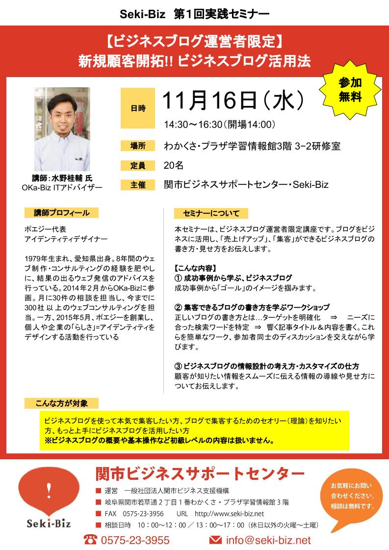 11月16日(水)には、ブログの実践セミナーも開催します。